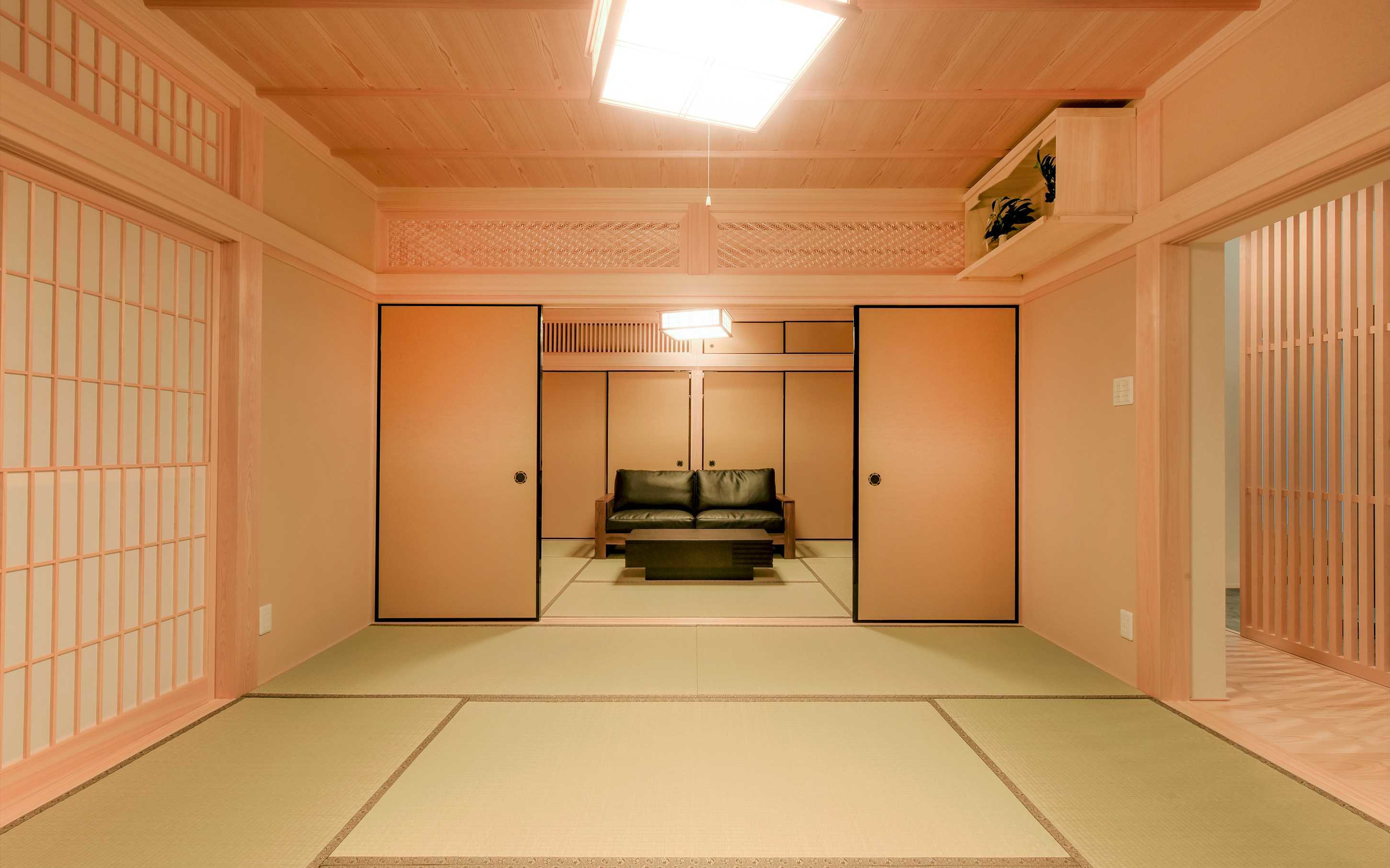 重厚な門構えの中を入ると。大屋根と深い軒。小川が流れる広々とした庭園が来客者を招き入れます。
