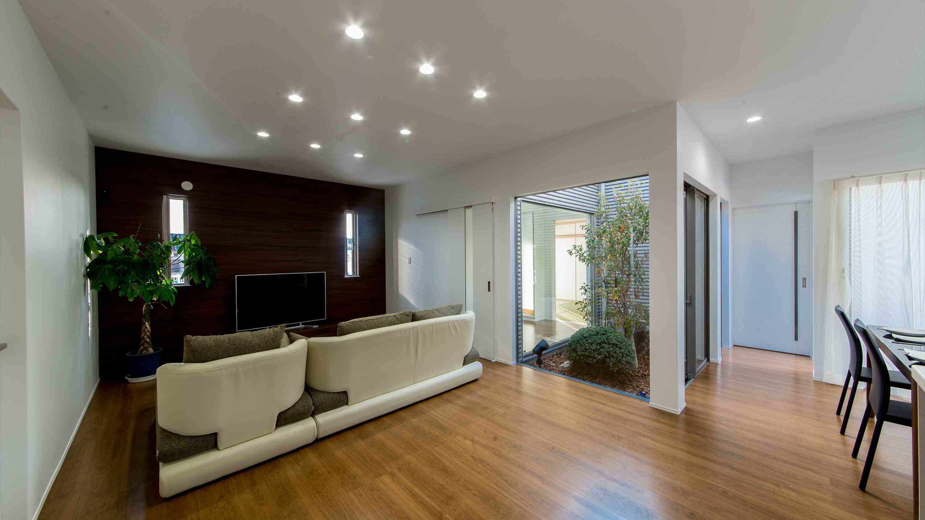 自然を身近に感じられる坪庭や、部屋からテラスへ
